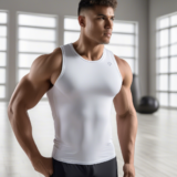 Sleeveless gym tank top for unrestricted arm movement.